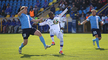 Нападающий ЦСКА Сейду Думбия, забивший победный гол в матче 24-го тура чемпионата России против «Крыльев …