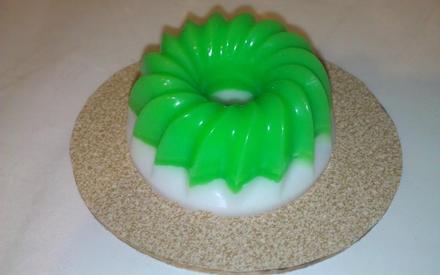 Форму сбрызнуть спиртом, вылить туда массу со всеми добавками и сбрызнуть сверху еще раз. Чтобы мыло получилось двухцветным, как на фото, готовить нужно в двух разных пиалках и заливать в форму слоями. Застыл первый, зеленый, слой – сбрызнуть его спиртом (так лучше скрепятся слои) и добавлять второй – белый, в который можно уже ничего, кроме диоксида титана для цвета, не добавлять. Все полезные добавки уже есть в первом слое, а использоваться мыло будет полностью.