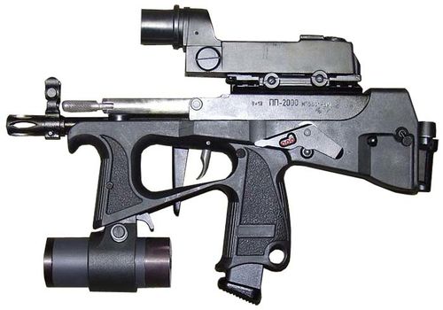 Девятимиллиметровый ПП-2000 разработан в городе Тула, в 2001 году в КБ Приборостроения (акционерное общество им. академика А.Г.Шипунова). Впервые показан на военной выставке в 2004 году. Пистолет-пулемет выпускается серийно и уже стоит на вооружении в силах МВД. Предназначен в основном для специальных операций в условиях города в качестве оружия ближнего боя.