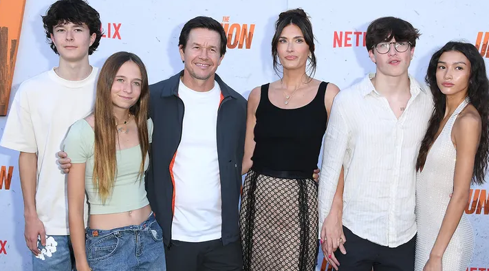 Марк Уолберг прошел по красной дорожке премьеры 2024 года со своей женой Рией Дёрхэм и тремя из своих детей: Бренданом, Грейс и Майклом (который привел свою девушку Санни Гейнс).